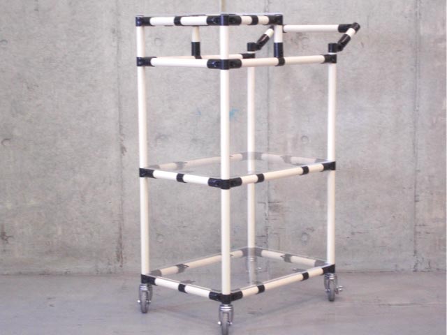そこで、鉄に樹脂をコーティングしたパイプを組み合わせたピッキング台車を製作しました。