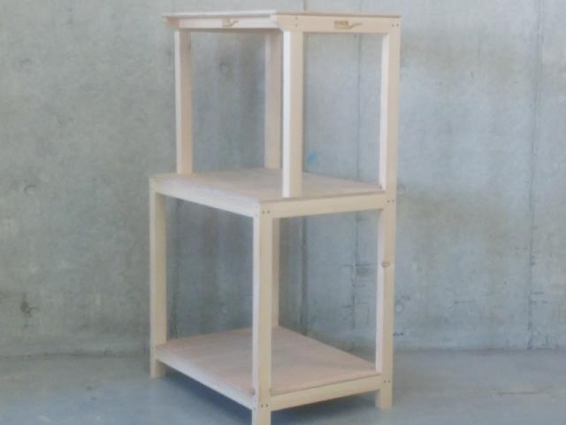 製作実績 次へ 名称: パソコンラック サイズ: 幅65(cm) 奥行き45(cm) 高さ110(cm) 作業現場にてパソコンを使用する際、普通の事務机と椅子ですと立ち座りがかえって面倒になりがちです。そこで、立ったままの姿勢でPC操作がしやすいよう製作したのがこちらのパソコン台になります。中段にはプリンター等の付属機器を収納でき、下段は補給用のコピー用紙や備品置き場になります。 小型プリンターや帳票を広げられるよう、横幅を広げたモデルもございます。 次へ その他の作業台はこちら トップページへ戻る